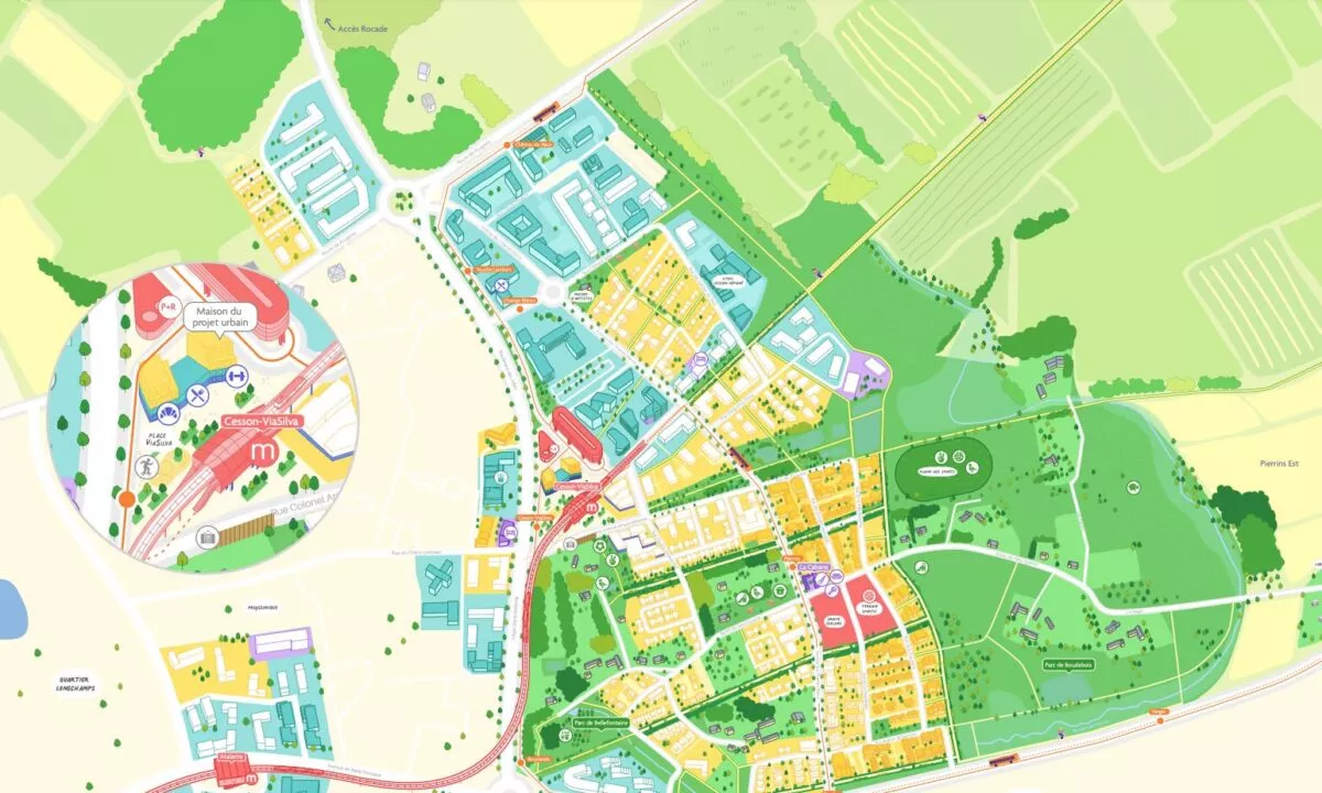Enfin, vous pourrez également naviguer dans la nouvelle carte sensible illustrée de ViaSilva, pour visualiser le quartier dans les moindres détails.