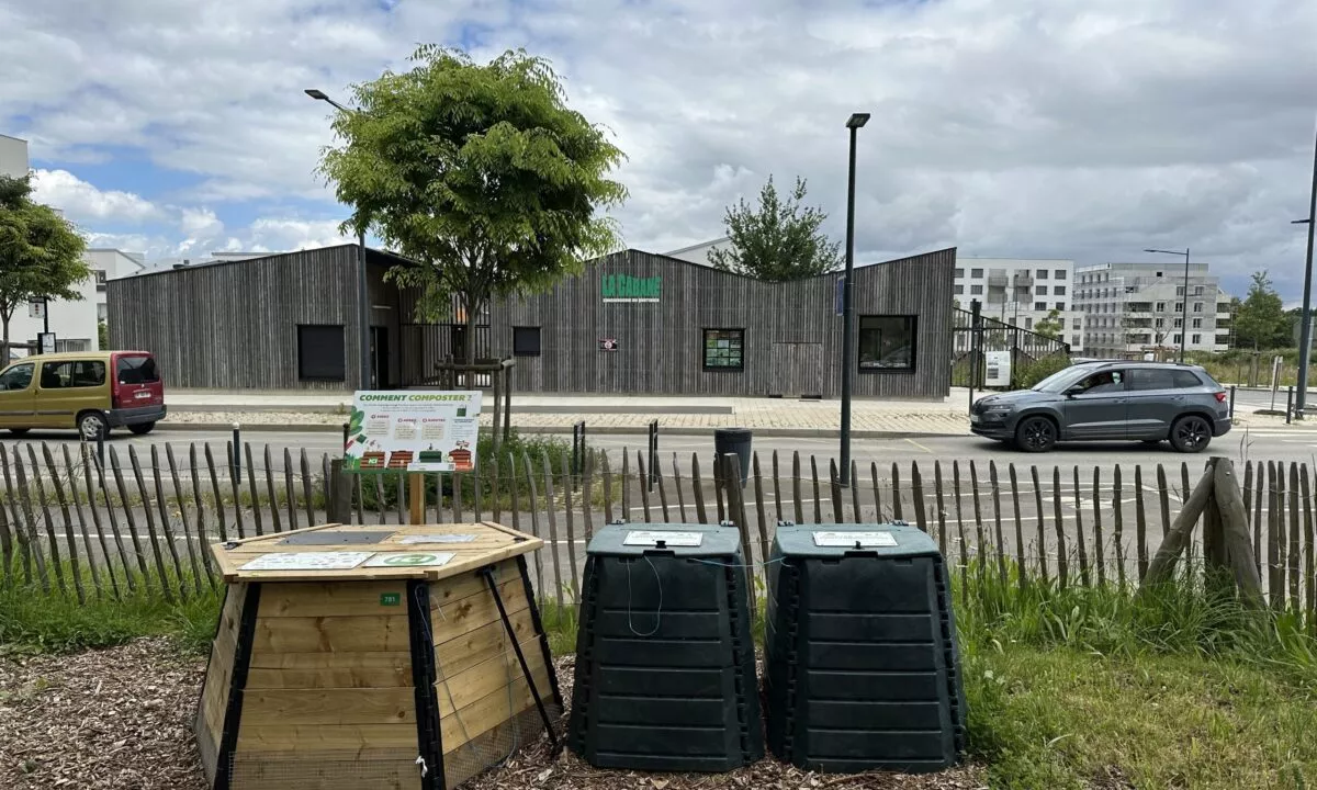 Depuis avril 2024, une aire de compostage est installée au niveau de l’entrée du jardin des proximités, juste en face de La Cabane. Plusieurs bacs permettent aux résidents de valoriser leurs biodéchets, qui seront ensuite transformés en engrais naturels. Le dispositif est encadré par Rennes Métropole, et suivi de près par un habitant-référent.